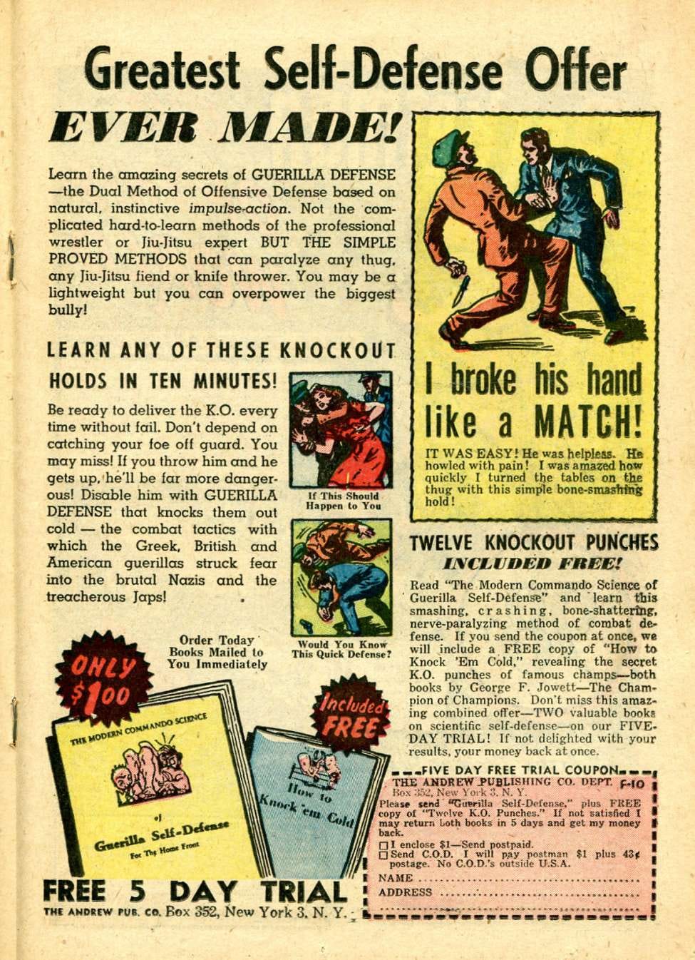 For all these artificially created or aggravated inferiority feelings, the comic-book ads offer one emotional outlet: overcompensation in brutality. Under the thin disguise of self-defense, full-page ads are permitted to tell millions of children: